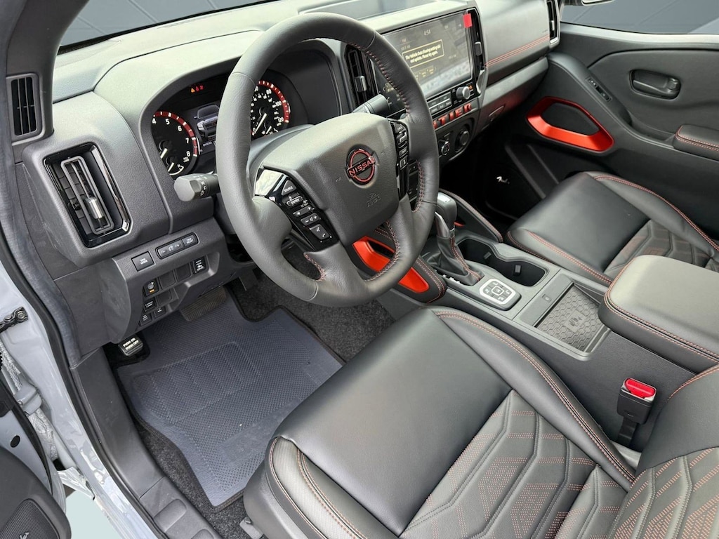 CHARCOAL W/LAVA RED ST, LEATHER SEAT TRIM -inc: For front and rear seats (1st/2nd rows), BOULDER GRAY PEARL, [T11] TOW PACKAGE (T11) -inc: tow hitch and tow harness, [P01] PRO PREMIUM PACKAGE -inc: Auto-Dimming Mirror, Nissan Door-to-Door Navigation, Traffic Sign Recognition (TSR), Fender Premium Audio System w/10 Speakers, dual subwoofer, Partial Under-Seat Storage Delete, HomeLink UGDO, Auto-Tilt & Slide Sunroof w/Manual Shade, [M92] ESSENTIALS KIT -inc: adventure medic kit, off-road adventure kit, seatback organizer and owner's manual portfolio, [K04] PRO-4X CONVENIENCE PACKAGE -inc: Bed Under-Rail Lighting, Remote Engine Starter, 120V Power Outlet in Bed, Heated Front Seats, Intelligent Around View Monitor (I-AVM), Moving Object Detection (MOD) and enhanced off-road mode, Utili-Track System, 2 adjustable tie-down cleats, Spray-In Bedliner, Trailer Hitch w/Wiring Harness, Heated Steering Wheel, Wireless Charging for Personal Devices, Heated Outside Mirrors, 120V Power Outlet in Rear Center Console, [F92] ELECTRONIC TAILGATE LOCK, [E10] PREMIUM PAINT, [B93] OFF-ROAD STYLE STEP RAILS, [B08] MUD FLAPS. This Nissan Frontier has a strong Regular Unleaded V-6 3.8 L/231 engine powering this Automatic transmission.