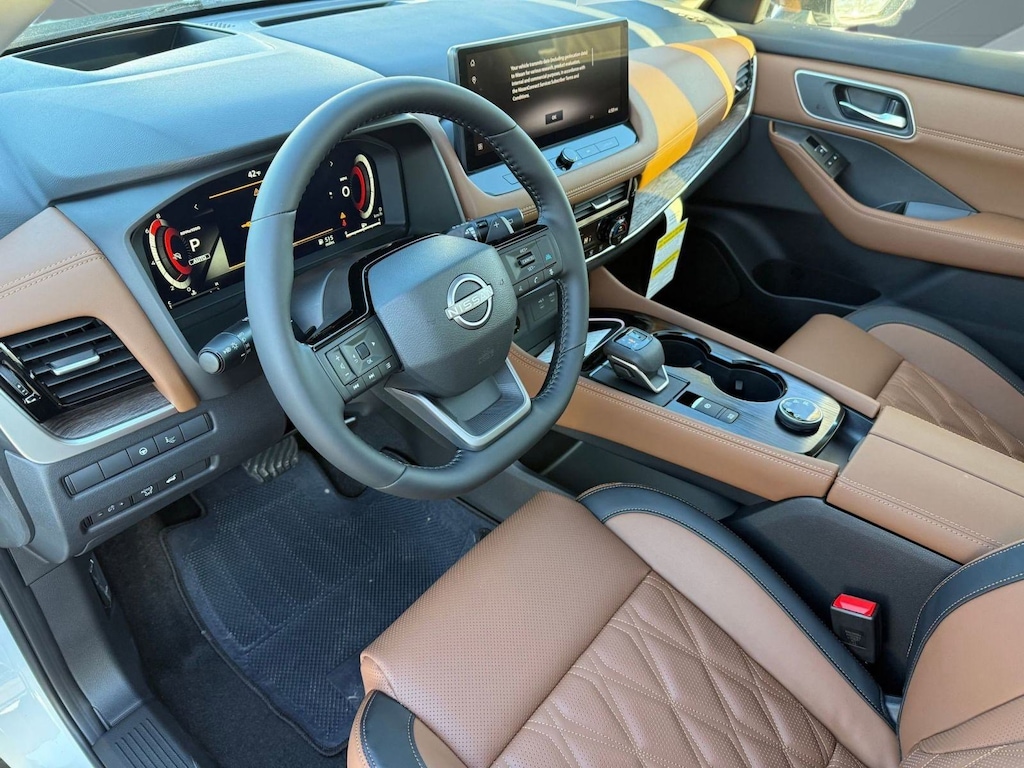 EVEREST WHITE PEARL/SUPER BLACK, CHESTNUT, QUILTED SEMI-ANILINE LEATHER-APPOINTED SEAT TRIM -inc: Perforated, [P04] PLATINUM PREMIUM PACKAGE -inc: Heated Rear Seats, Motion-Activated Power Liftgate, Tri-Zone Automatic Temperature Control, Head-Up Display, [E08] PREMIUM PAINT W/TWO-TONE, [B96] ROOF RAIL CROSS BARS, [B95] CHROME REAR BUMPER PROTECTOR, [B94] BLACK SPLASH GUARDS (SET OF 4), Wireless Phone Connectivity, Wheels: 19" Unique Dark Painted Aluminum Alloy -inc: Machine finished, Vehicle Dynamic Control (VDC) Electronic Stability Control (ESC). This Nissan Rogue has a powerful Intercooled Turbo Regular Unleaded I-3 1.5 L/91 engine powering this Variable transmission.